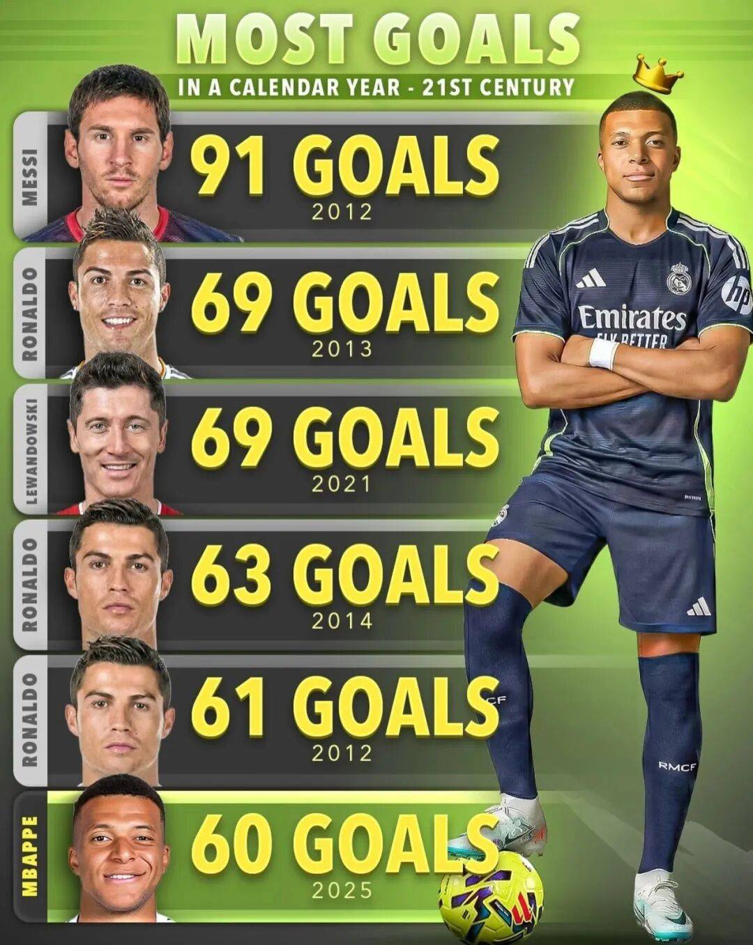 接下来的一个月再进10球,姆巴佩就能在某个经典排行榜上超越C罗,仅次于梅西