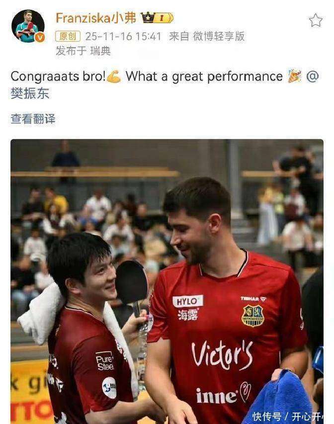 在这场比赛中,樊振东以4:1战胜了林诗栋,成功获得了个人第六枚全运金牌。德国各界纷纷通过不同的方式表达了对他的认可。萨尔布吕肯俱乐部在社交平台上发布了文章庆祝樊振东的胜利,特别提到了他在半决赛和决赛中的精彩表现。此外,俱乐部还宣布了一个重要的消息——樊振东将在12月回归球队,参加欧洲冠军联赛。这一消息让俱乐部成员们感到十分兴奋,大家纷纷表示等不及了。不仅俱乐部热情祝贺,樊振东在德甲的队友、德国乒乓球名将弗朗西斯卡也在社交平台上为他送上了祝福,并称这次比赛是一次伟大的表演。这种友谊让人感动,更让大家感受到运动员之间的深厚情谊。同时,德甲联赛的官方账号也参与了互动,让这一话题更加火热。从中可以看出,樊振东在德国体育圈的影响力不小,已经成为了众人关注的焦点。
